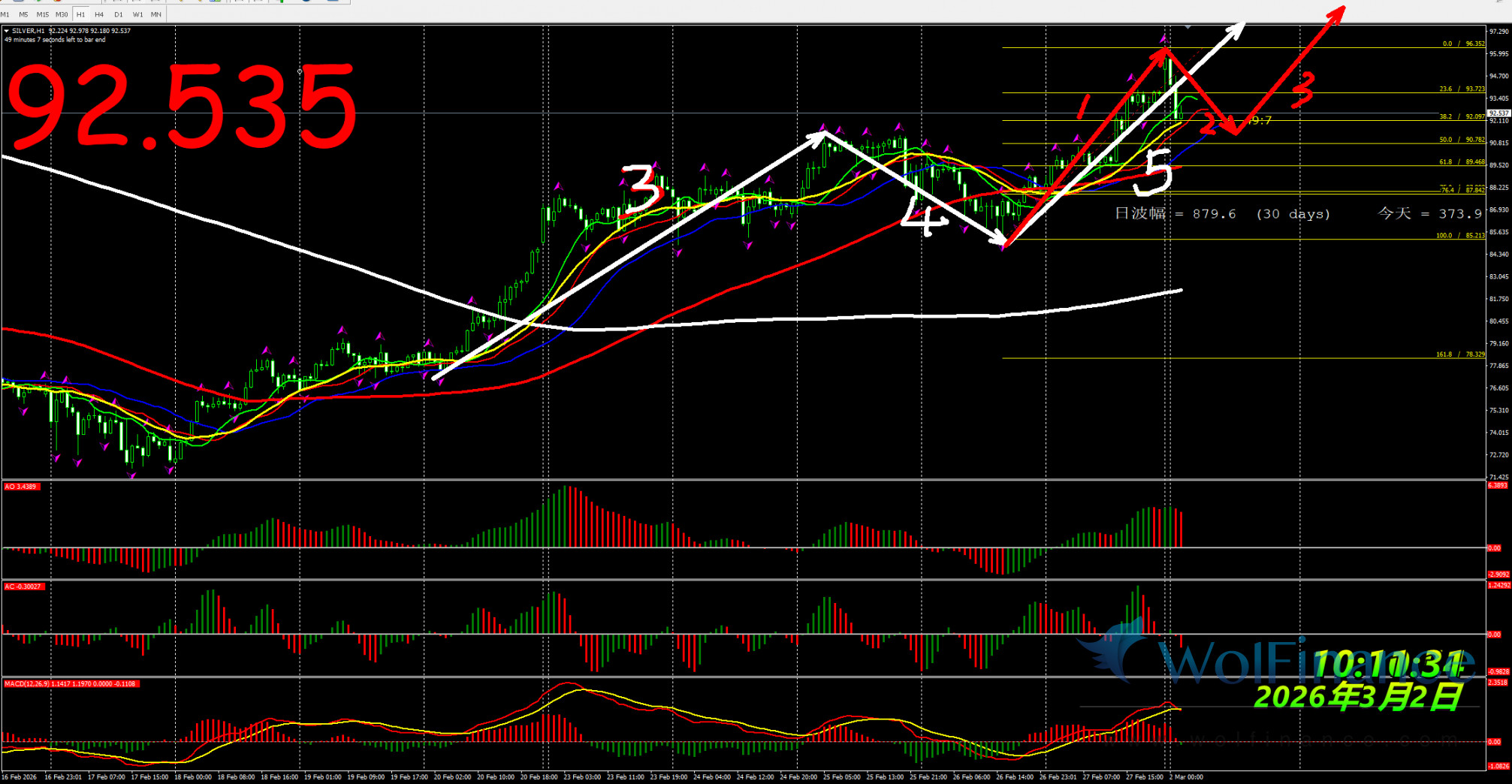 2、白银关注90.50附近做多,止损:89.50;目标:92.10;95.80;99.30;