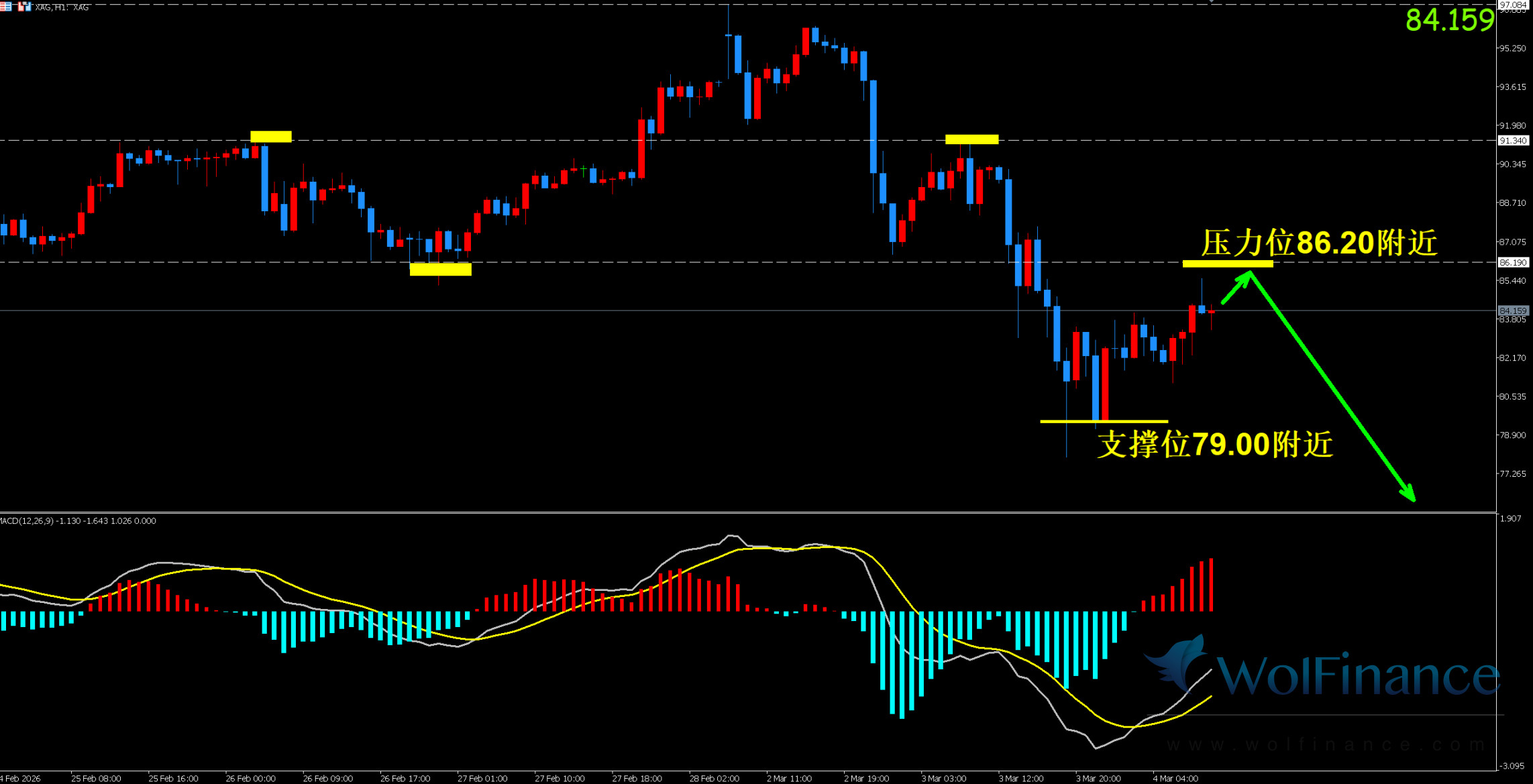 周三(03月04日)白银价格早盘震荡反弹,昨夜美盘白银大跌后形成反弹震荡行情,最新报85.00美元/盎司,全球金融市场陷入剧烈动荡。伊朗冲突进入第四天,美以联军对伊朗境内目标展开猛烈打击,伊朗革命卫队随即报复,霍尔木兹海峡被宣布关闭,全球五分之一的原油运输命脉瞬间中断。,欧洲天然气批发价格暴涨40%以上。这种能源供应冲击迅速传导至全球通胀预期,美联储降息路径被迫延后,美国国债收益率连续第二个交易日走高,美元指数强势反弹至99上方。在这一极端环境下。