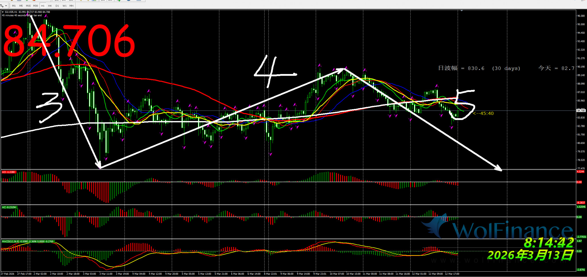 3、白银短线关注白银85.30附近是否有空单机会;