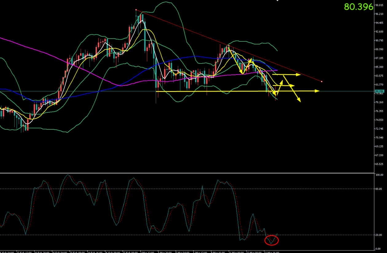 下方支撑位:78.30 / 77.50 / 76.50