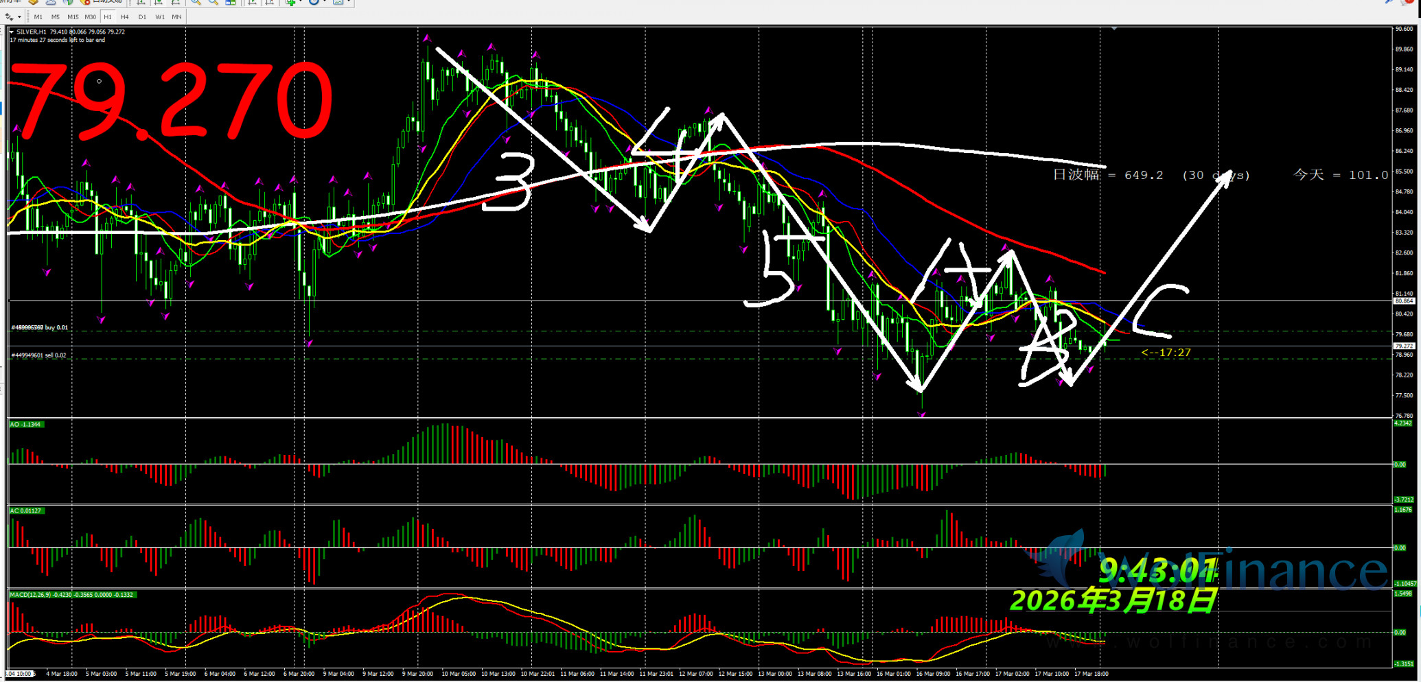 2、白银关注79.10附近做多,止损:78.10;目标:79.70;81.50;82.70;