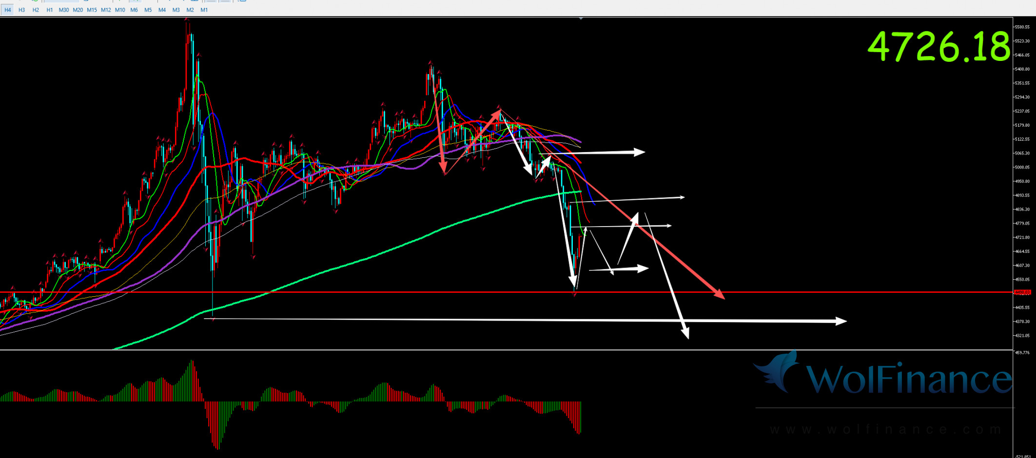 解析:日线AO红色 和AC绿色,4小时AO绿色和AC绿色,金价目前处于5598-4402下跌段中的调整结构中,金价自4402反弹至5419后回落,目前回落至6小时的144均线后反弹;从浪形上看,目前处于1小时自4839-5419上涨段中的修正浪预期中,30分钟上金价自5419下跌4994后反弹至5207后昨日形成30小时的5181-5146标准混沌点后下破跌至5050后反弹混沌区间附近震荡,当下30分钟处于下跌4浪调整中,金价下跌有开启30分钟5浪预期但金价未跌破前低4994,上周四金价在5181-5146混沌区间下破跌至5049后再次反弹至震荡周五非农依然维持在5207-5049之间震荡,当下金价2小时60死叉120均线,目前30分钟完成了调整abc浪昨日金价自5191下跌还是未破新低后反弹站上2小时的60均线,当下金价基本确定进入1小时的反弹B浪中且和2小时的B浪共用,金价站上4小时的60均线和30分钟的356均线后涨至5238后回落至5160附近后在5238-5160之间震荡,金价10分钟完成5浪结构走5015-5238上涨段调整且调整中的下跌C浪目前跌至3小时的144均线后反弹在89-144均线之间偏空震荡,金价自5238跌破前低4996后跌至4967后反弹,涨至5037.73后回落维持在5037-4969之间震荡后形成了20分钟4994-5016的混沌点上破涨至5044后回落至4973反弹维持在5030-4980之间震荡之后当金价反弹不过5017-5030金价30分钟开启5主跌浪跌至4804后小幅反弹,目前金价有效跌破日线的60均线及4小时的356均线,当下大周期上仍处于4小时的下跌C浪中且此伦下跌是2小时爆发的主跌浪,是故金价最低标准线为2小时的蓝色线和60均线理论上金价只要不站上2小时的蓝色线和60均线则继续看4552-4390目标预期,金价昨日延续下跌跌至日线级别的144均线4504后展开反弹,目前反弹至30分钟的60和89均线区间,可以判定30开启调整4浪预期当下处于反弹4-a浪中,日内上方关注先看4737-4781的多空争夺,若上不去则继续看30分钟的回调4-b浪预期下方关注4591-4523区间支撑预期看30分钟的4-c浪反弹预期上方关注4892-4920压力预期后看30分钟走5浪预期。